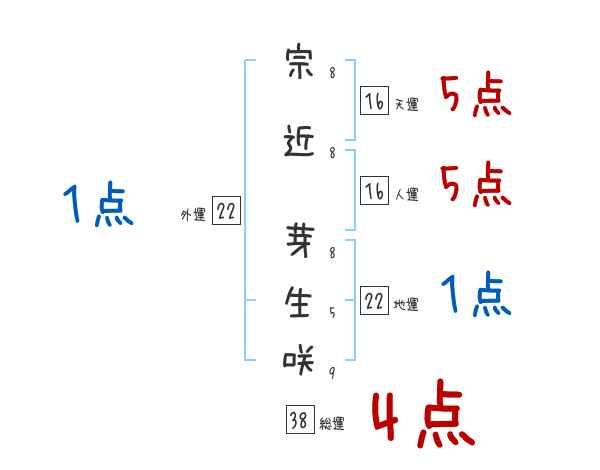 天運![]() | 宗近芽生咲さんの天運は16画の5つ星!人望が厚く大きく発展する。逆転成功が見える。 家系が持つ宿命的な運勢を表します。祖先から受け継いだ苗字ですので自分の力が及びません。家柄を象徴します。 |