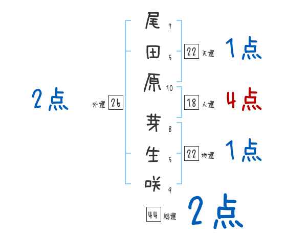 尾田原芽生咲さんの画数の鑑定結果