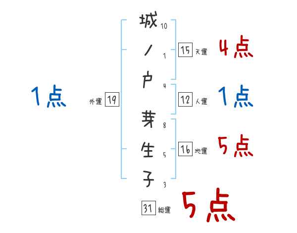 地運![]() | 城ノ戸芽生子さんの地運は16画の5つ星!人望が厚く大きく発展する。逆転成功が見える。 個性を表す基礎的な運勢です。性格形成や対人関係、行動力など家庭環境に影響されます。主に誕生してから20歳くらいまでの若年期の運勢を表します。 |