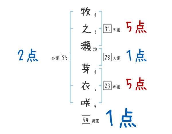 牧之瀬芽衣咲さんの画数の鑑定結果