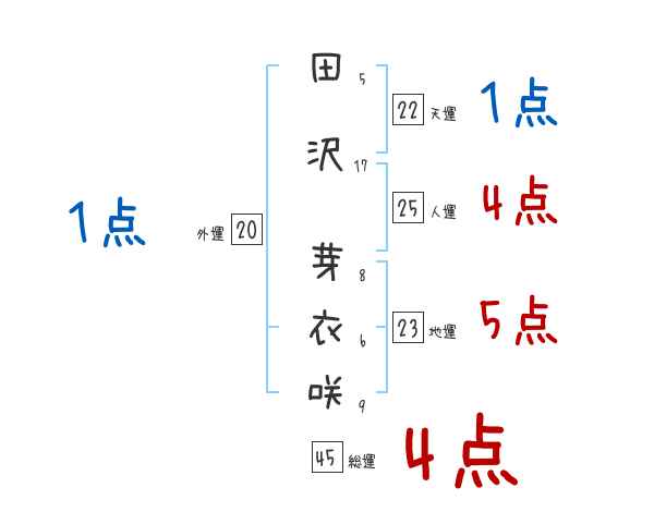 田沢芽衣咲さんの画数の鑑定結果