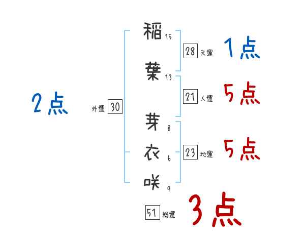 外運![]() | 稲葉芽衣咲さんの外運は30画の2つ星!浮き沈みの激しさに注意しましょう。 生活面を象徴する運勢です。外部から受ける影響力を表し、結婚運、家庭運や職場、環境への順応性を表します。 |
