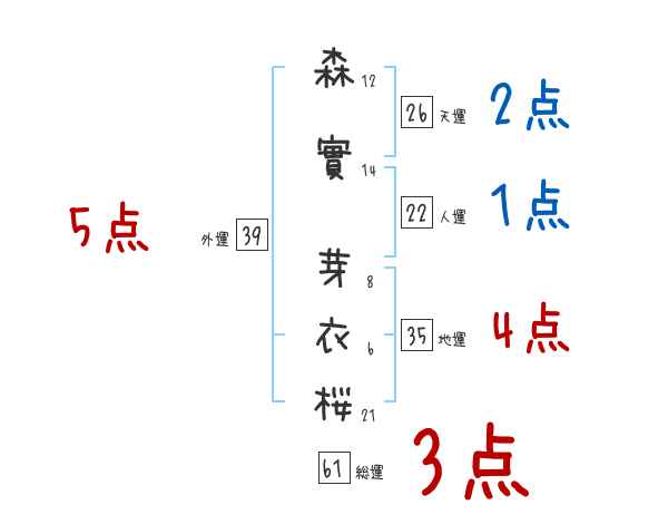 外運![]() | 森實芽衣桜さんの外運は39画の5つ星!社交性に優れ人望が厚い。人の上に立ち成功する。 生活面を象徴する運勢です。外部から受ける影響力を表し、結婚運、家庭運や職場、環境への順応性を表します。 |