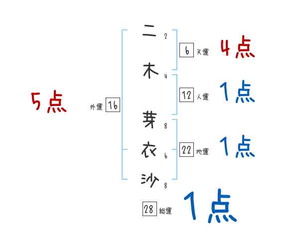 総運![]() | 二木芽衣沙さんの総運は28画の1つ星!家庭環境に注意。スポーツで活躍できる能力があるかも。 あなたの人生を表す1番重要な運勢です。生涯を通じて影響する総合運となり、主に50歳以降の晩年期に影響を及ぼします。 |