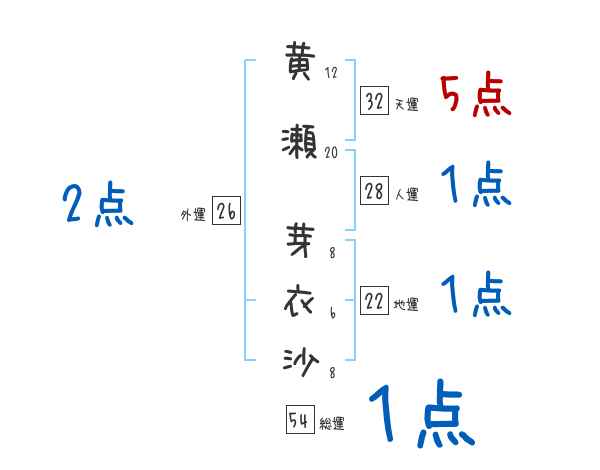 黄瀬芽衣沙さんの画数の鑑定結果