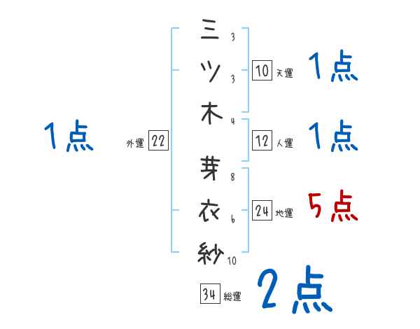三ツ木芽衣紗さんの画数の鑑定結果