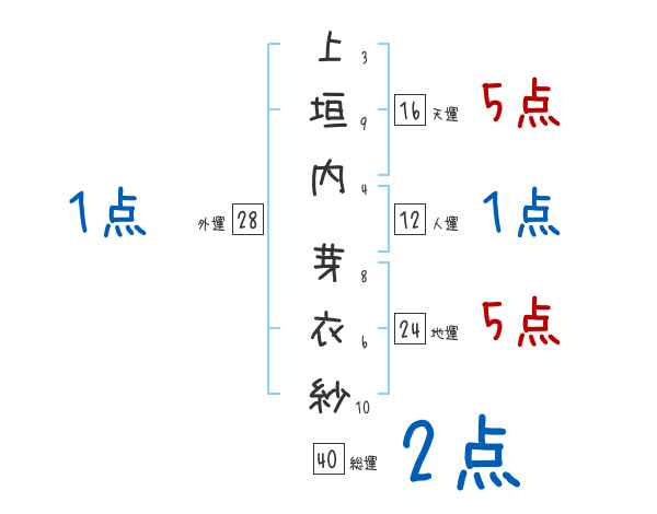 上垣内芽衣紗さんの画数の鑑定結果