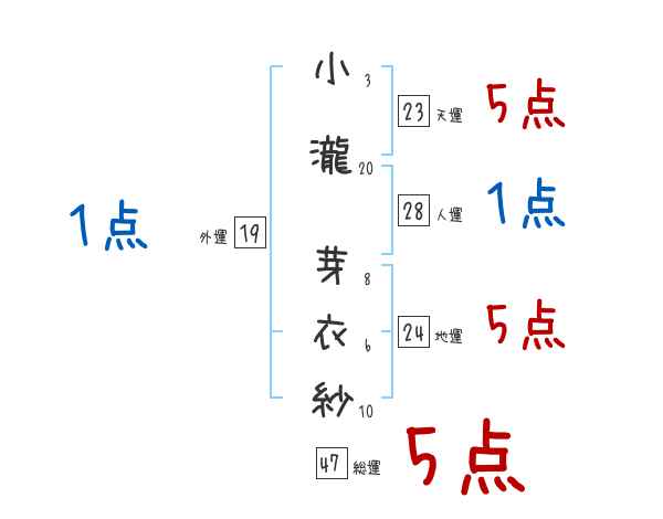 小瀧芽衣紗さんの画数の鑑定結果