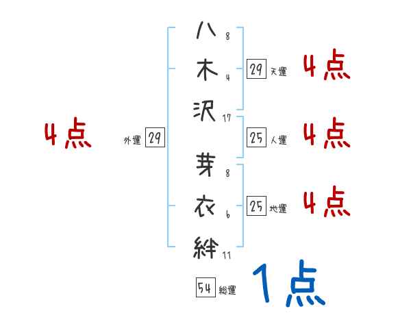 八木沢芽衣絆さんの画数の鑑定結果