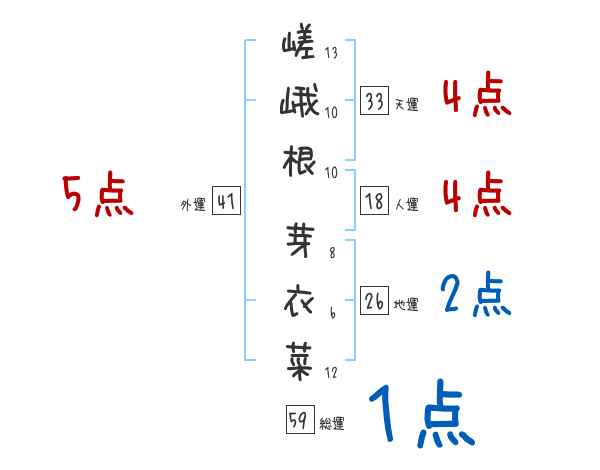 嵯峨根芽衣菜さんの画数の鑑定結果