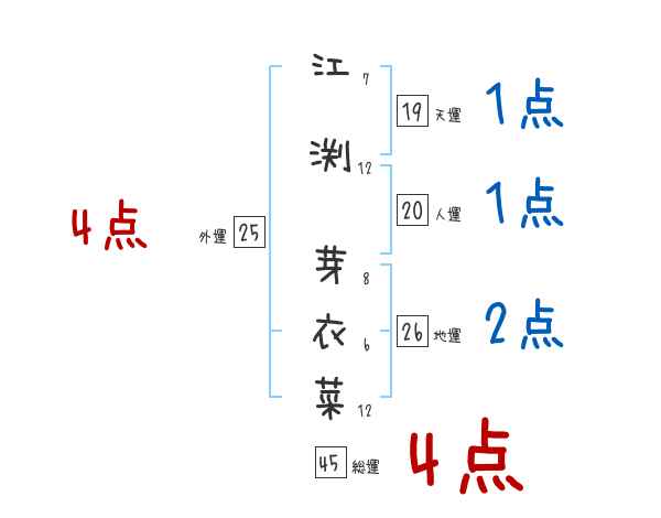 江渕芽衣菜さんの画数の鑑定結果