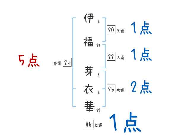 外運![]() | 伊福芽衣華さんの外運は24画の5つ星!家庭運が良く順調な人生。金運にも恵まれる。 生活面を象徴する運勢です。外部から受ける影響力を表し、結婚運、家庭運や職場、環境への順応性を表します。 |