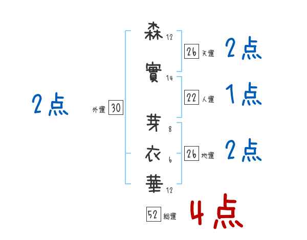外運![]() | 森實芽衣華さんの外運は30画の2つ星!浮き沈みの激しさに注意しましょう。 生活面を象徴する運勢です。外部から受ける影響力を表し、結婚運、家庭運や職場、環境への順応性を表します。 |