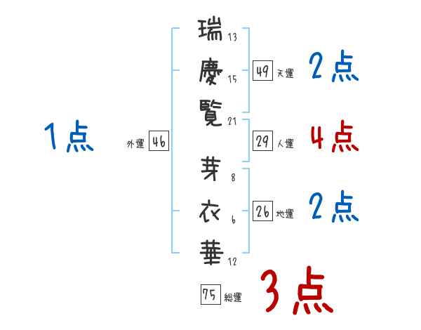 瑞慶覧芽衣華さんの画数の鑑定結果