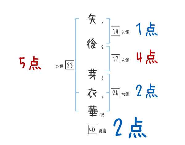 矢後芽衣華さんの画数の鑑定結果