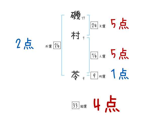 磯村苓さんの画数の鑑定結果