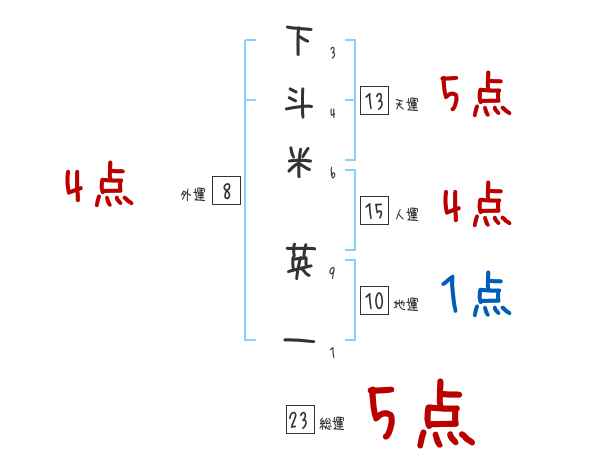 外運![]() | 下斗米英一さんの外運は8画の4つ星!勤勉家。根気強く努力し成功する。忍耐力がある。 生活面を象徴する運勢です。外部から受ける影響力を表し、結婚運、家庭運や職場、環境への順応性を表します。 |