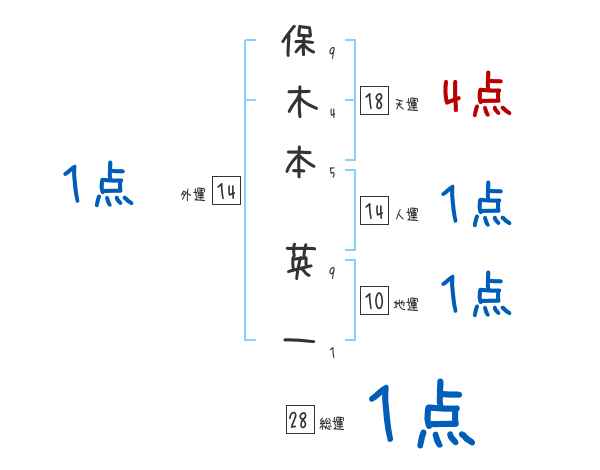 保木本英一さんの画数の鑑定結果