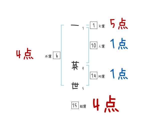 天運![]() | 一英世さんの天運は1画の5つ星!行動力、指導力があり出世し繁栄する。幸運に恵まれる。 家系が持つ宿命的な運勢を表します。祖先から受け継いだ苗字ですので自分の力が及びません。家柄を象徴します。 |