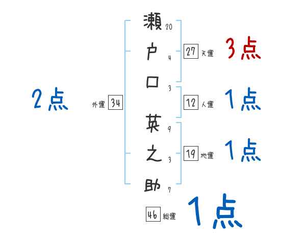 瀬戸口英之助さんの画数の鑑定結果