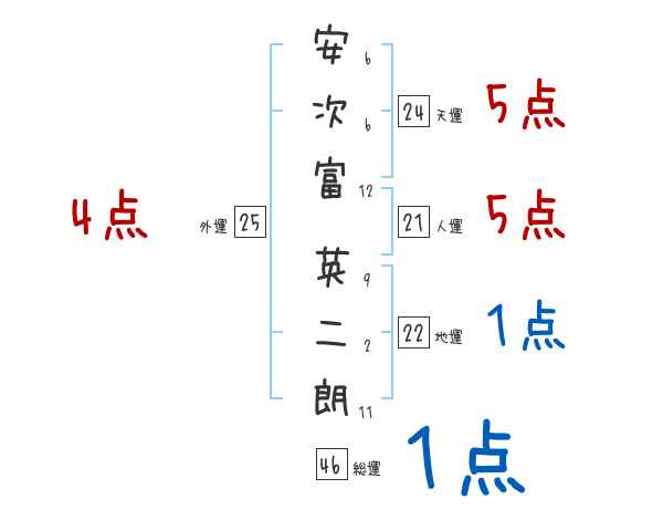 安次富英二朗さんの画数の鑑定結果
