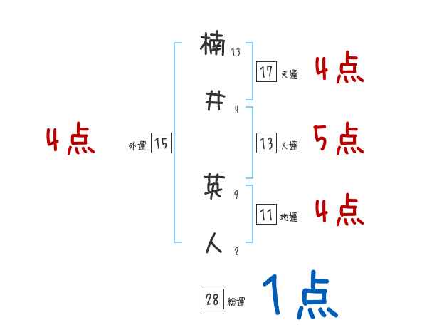 楠井英人さんの画数の鑑定結果