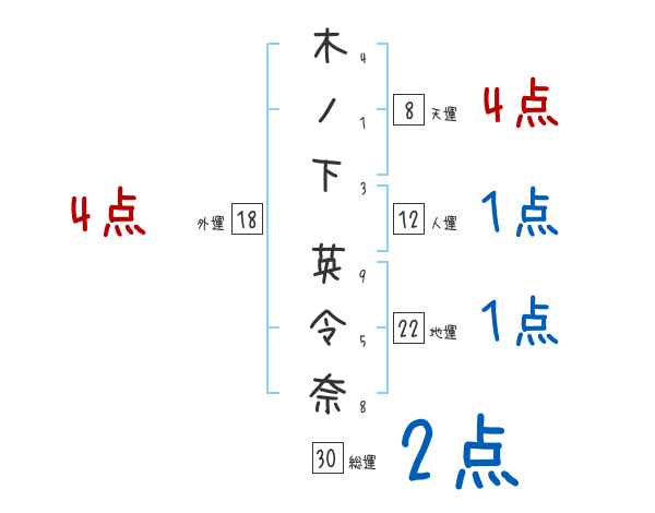 木ノ下英令奈さんの画数の鑑定結果
