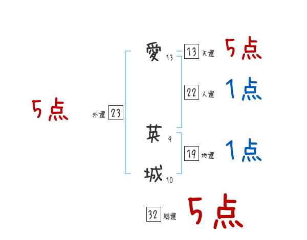 愛英城さんの画数の鑑定結果