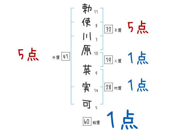 総運![]() | 勅使川原英実可さんの総運は60画の1つ星!悲観的で迷いやすい。波乱が多く損をしないように。 あなたの人生を表す1番重要な運勢です。生涯を通じて影響する総合運となり、主に50歳以降の晩年期に影響を及ぼします。 |