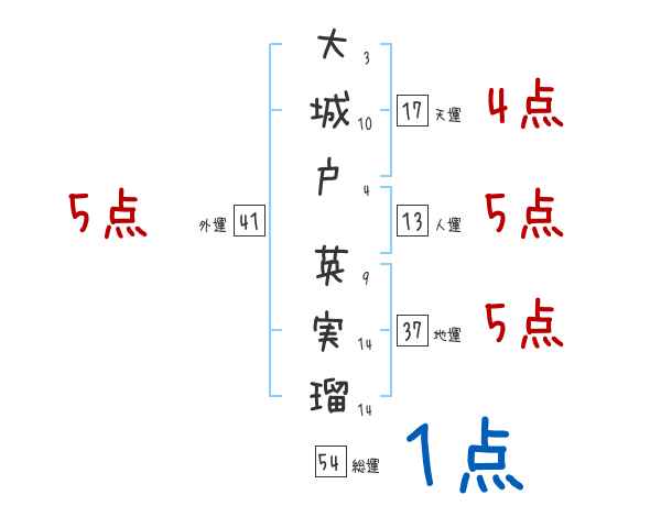 総運![]() | 大城戸英実瑠さんの総運は54画の1つ星!トラブルが多いかも。周りをよく見て協調して過ごしましょう。 あなたの人生を表す1番重要な運勢です。生涯を通じて影響する総合運となり、主に50歳以降の晩年期に影響を及ぼします。 |