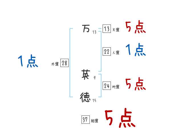 万英徳さんの画数の鑑定結果