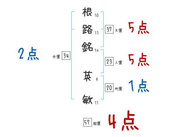 根路銘英敏さんの画数の鑑定結果