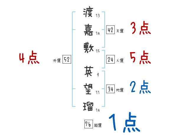 渡嘉敷英望瑠さんの画数の鑑定結果