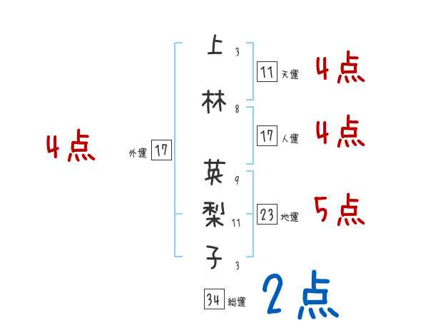 上林英梨子さんの画数の鑑定結果
