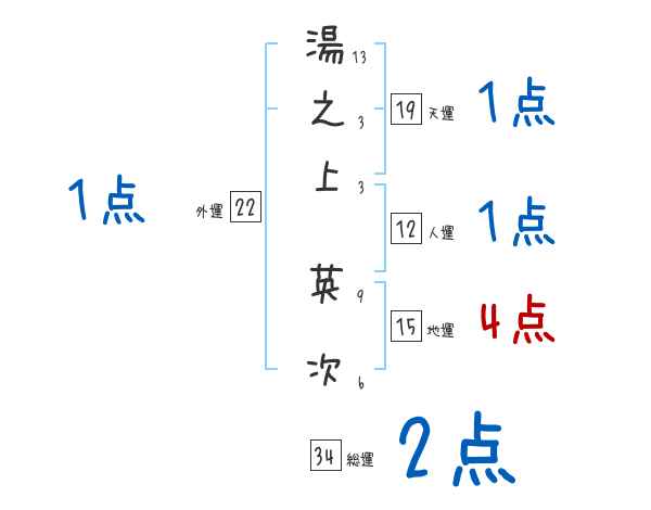 湯之上英次さんの画数の鑑定結果