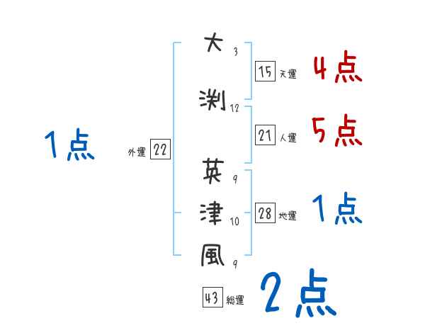 大渕英津風さんの画数の鑑定結果
