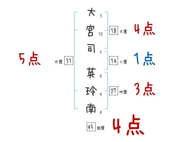大宮司英玲南さんの画数の鑑定結果