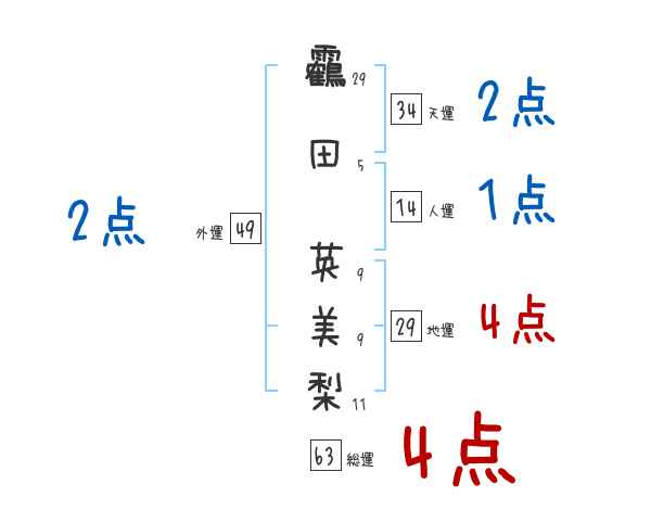 外運![]() | 靏田英美梨さんの外運は49画の2つ星!不安定な性格で明暗がある人生。周りの人には支援されやすい。 生活面を象徴する運勢です。外部から受ける影響力を表し、結婚運、家庭運や職場、環境への順応性を表します。 |