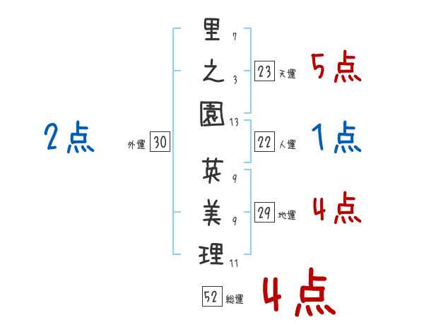 外運![]() | 里之園英美理さんの外運は30画の2つ星!浮き沈みの激しさに注意しましょう。 生活面を象徴する運勢です。外部から受ける影響力を表し、結婚運、家庭運や職場、環境への順応性を表します。 |