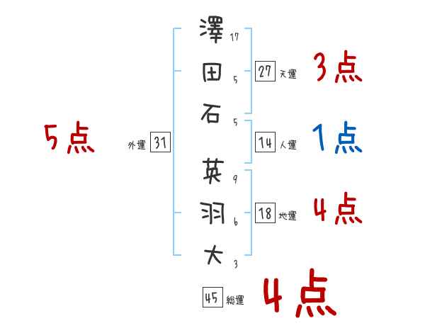 澤田石英羽大さんの画数の鑑定結果