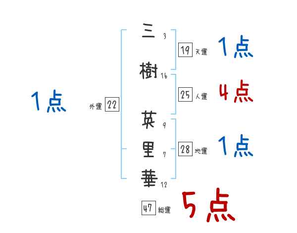 天運![]() | 三樹英里華さんの天運は19画の1つ星!優れた才能を持ちますが、協調性が足りないことも。周りの人と協力する事を意識しましょう。 家系が持つ宿命的な運勢を表します。祖先から受け継いだ苗字ですので自分の力が及びません。家柄を象徴します。 |