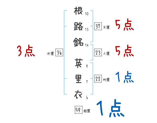 外運![]() | 根路銘英里衣さんの外運は36画の3つ星!先見性が豊かです。多少神経質で苦労することも。 生活面を象徴する運勢です。外部から受ける影響力を表し、結婚運、家庭運や職場、環境への順応性を表します。 |