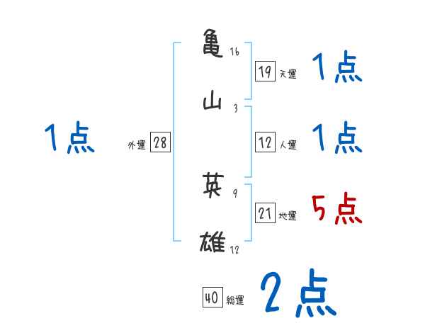 亀山英雄さんの画数の鑑定結果