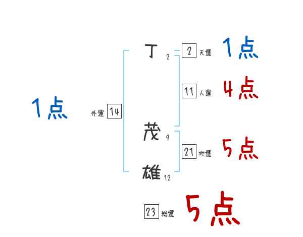 丁茂雄さんの画数の鑑定結果