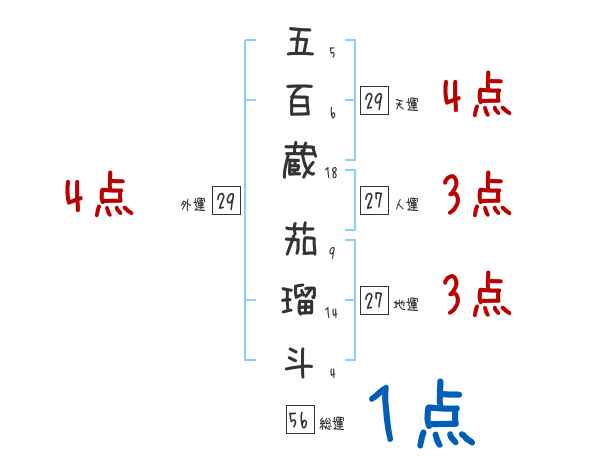 五百蔵茄瑠斗さんの外運は29画の4つ星