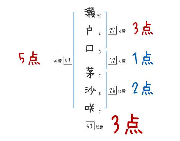 瀬戸口茅沙咲さんの画数の鑑定結果