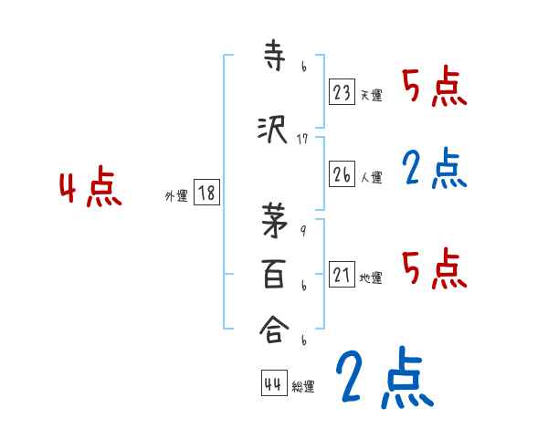 寺沢茅百合さんの画数の鑑定結果