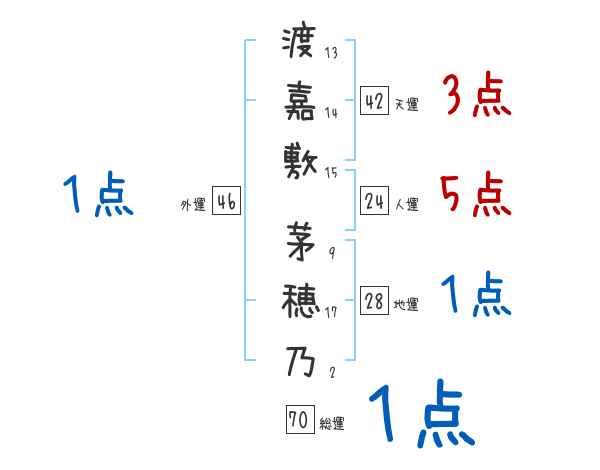 渡嘉敷茅穂乃さんの画数の鑑定結果