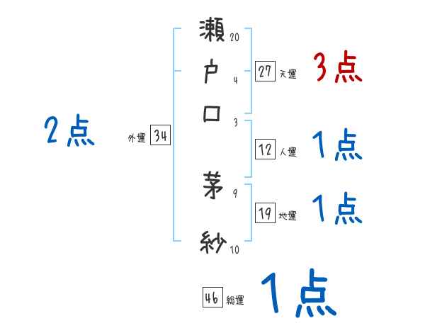 瀬戸口茅紗さんの画数の鑑定結果