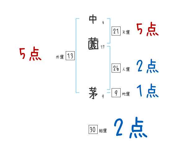 中薗茅さんの画数の鑑定結果